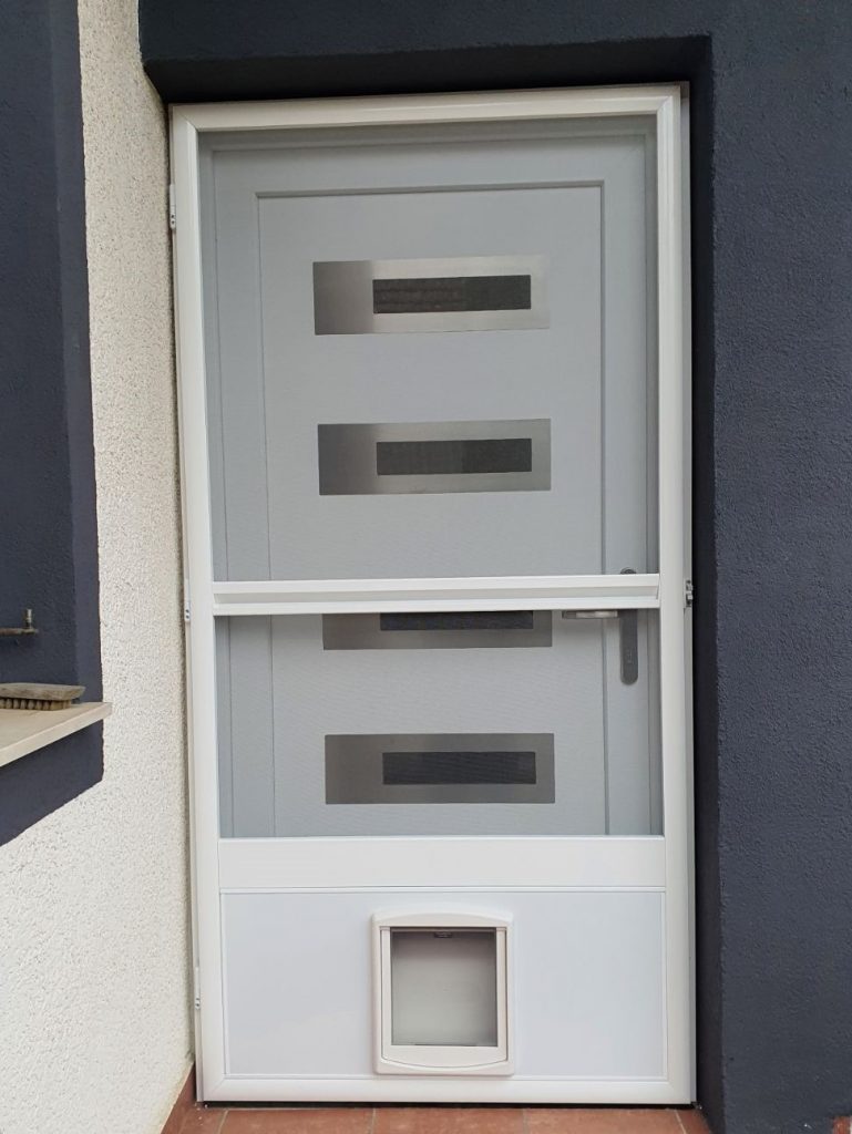 Zaokretna komarnik vrata od aluminijskog profila, s vratašcima za vašeg kućnog ljubimca. Vratašca prilagođavamo prema veličini vašeg psa.